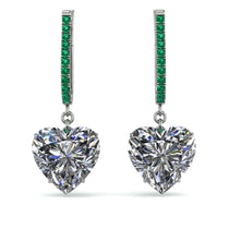 These heart diamond hoop earrings promise to be the center of attention with their romantic brilliance. Fashioned in sleek, each hoop earring features a swoosh of shimmering white diamonds along the outer edge. A heart-shaped charm, lined with shimmering stones at the bottom that suspends from the hoop adding a radiant sparkle to these earrings. The hoop earrings secure comfortably with omega backings.