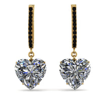 These heart diamond hoop earrings promise to be the center of attention with their romantic brilliance. Fashioned in sleek, each hoop earring features a swoosh of shimmering white diamonds along the outer edge. A heart-shaped charm, lined with shimmering stones at the bottom that suspends from the hoop adding a radiant sparkle to these earrings. The hoop earrings secure comfortably with omega backings.