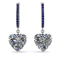 These heart diamond hoop earrings promise to be the center of attention with their romantic brilliance. Fashioned in sleek, each hoop earring features a swoosh of shimmering white diamonds along the outer edge. A heart-shaped charm, lined with shimmering stones at the bottom that suspends from the hoop adding a radiant sparkle to these earrings. The hoop earrings secure comfortably with omega backings.