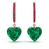 These heart Emerald hoop earrings promise to be the center of attention with their romantic brilliance. Fashioned in sleek, each hoop earring features a swoosh of shimmering white diamonds along the outer edge. A heart-shaped charm, lined with shimmering stones at the bottom that suspends from the hoop adding a radiant sparkle to these earrings. The hoop earrings secure comfortably with omega backings.