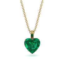 Overwhelm her with joy with this breathtaking heart cut Emerald necklace. Crafted to reflect sophisticated elegance, this timeless necklace showcases a vibrant 11mm heart-shaped center Emerald framed by a delicate halo of stones. The pendant sways from a chain that fastens with a spring ring clasp.