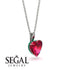Overwhelm her with joy with this breathtaking heart cut Ruby necklace. Crafted to reflect sophisticated elegance, this timeless necklace showcases a vibrant 11mm heart-shaped center Ruby framed by a delicate halo of stones. The pendant sways from a chain that fastens with a spring ring clasp.