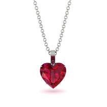 Overwhelm her with joy with this breathtaking heart cut Ruby necklace. Crafted to reflect sophisticated elegance, this timeless necklace showcases a vibrant 11mm heart-shaped center Ruby framed by a delicate halo of stones. The pendant sways from a chain that fastens with a spring ring clasp.