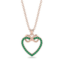 Elegant, feminine heart Emerald necklace covered with 27 Emeralds, and wrapped by a delicate sign of infinity in the upper side. This necklace is a romantic and beautiful gift that she will love to wear.