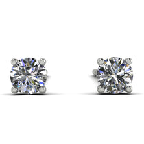 Simple and elegant, these solitaire diamond earrings showcase a graceful drop design. The round diamond are secured in four-prong settings and exude their beautiful glam hue. Set in gold, these diamond earrings are complete with lever back closures.