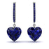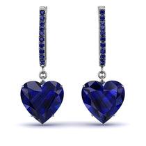 These heart Sapphire hoop earrings promise to be the center of attention with their romantic brilliance. Fashioned in sleek, each hoop earring features a swoosh of shimmering white diamonds along the outer edge. A heart-shaped charm, lined with shimmering stones at the bottom that suspends from the hoop adding a radiant sparkle to these earrings. The hoop earrings secure comfortably with omega backings.