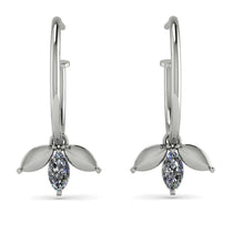 So stunning, these petite diamond J-hoop earrings are a sparkling addition to her wardrobe. Crafted in gold, each earring features a pretty bowed vine design touched with shimmering marquise center stone diamond in the center with 2 gold leaves around it. These post earrings secure comfortably with friction backs.