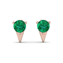 These Vintage earrings features 3 prong set round Emerald with a triangle sits below the center stone and the contrast really makes the statement earring pop. The triangle that hang from prong set Emerald posts so they also give some sparkle. These earrings have a friction back post, so you don’t have to worry about losing them. These Mid-Century earrings are just under an inch in length.