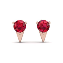 These Vintage earrings features 3 prong set round Ruby with a triangle sits below the center stone and the contrast really makes the statement earring pop. The triangle that hang from prong set Ruby posts so they also give some sparkle. These earrings have a friction back post, so you don’t have to worry about losing them. These Mid-Century earrings are just under an inch in length.