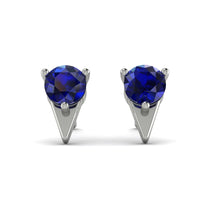 These Vintage earrings features 3 prong set round Sapphire with a triangle sits below the center stone and the contrast really makes the statement earring pop. The triangle that hang from prong set Sapphire posts so they also give some sparkle. These earrings have a friction back post, so you don’t have to worry about losing them. These Mid-Century earrings are just under an inch in length.