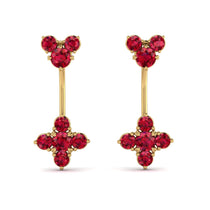 The compass was considered by sailors to be a good luck symbol and represented as a safe journey home. Nowadays, the compass symbolizes the spirit of adventure, providing direction as we navigate our path through life. Our glittering Ruby dangle compass earrings, crafted in gold with secure friction backs, are prong-set with round Ruby.