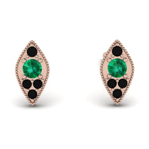 Perfectly petite, these vintage-inspired Emerald stud earrings are an adorable look she'll never want to take off. Crafted in marquise shape gold, each anytime earring showcases a sparkling in an intricate milgrain-lined bezel setting. Captivating Emerald and a bright polished shine, these post earrings secure comfortably with friction backs.