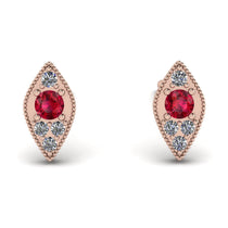 Perfectly petite, these vintage-inspired Ruby stud earrings are an adorable look she'll never want to take off. Crafted in marquise shape gold, each anytime earring showcases a sparkling in an intricate milgrain-lined bezel setting. Captivating Ruby and a bright polished shine, these post earrings secure comfortably with friction backs.