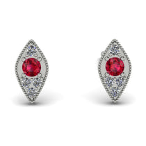Perfectly petite, these vintage-inspired Ruby stud earrings are an adorable look she'll never want to take off. Crafted in marquise shape gold, each anytime earring showcases a sparkling in an intricate milgrain-lined bezel setting. Captivating Ruby and a bright polished shine, these post earrings secure comfortably with friction backs.