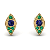 Perfectly petite, these vintage-inspired Sapphire stud earrings are an adorable look she'll never want to take off. Crafted in marquise shape gold, each anytime earring showcases a sparkling in an intricate milgrain-lined bezel setting. Captivating Sapphire and a bright polished shine, these post earrings secure comfortably with friction backs.
