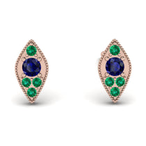 Perfectly petite, these vintage-inspired Sapphire stud earrings are an adorable look she'll never want to take off. Crafted in marquise shape gold, each anytime earring showcases a sparkling in an intricate milgrain-lined bezel setting. Captivating Sapphire and a bright polished shine, these post earrings secure comfortably with friction backs.