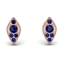 Perfectly petite, these vintage-inspired Sapphire stud earrings are an adorable look she'll never want to take off. Crafted in marquise shape gold, each anytime earring showcases a sparkling in an intricate milgrain-lined bezel setting. Captivating Sapphire and a bright polished shine, these post earrings secure comfortably with friction backs.
