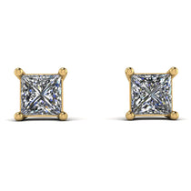 A perfect fit for royalty! Crafted in gold, each of these earrings features a shimmering 08ct. princess-cut diamond in a four-prong setting that makes an easy addition to any ensemble. So, why wait to make her your princess, all you need is this simple but spectacular pair of the princess -cut stud earrings.