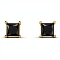 A perfect fit for royalty! Crafted in gold, each of these earrings features a shimmering 08ct. princess-cut black diamond in a four-prong setting that makes an easy addition to any ensemble. So, why wait to make her your princess, all you need is this simple but spectacular pair of the princess -cut stud earrings.
