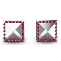 Our alluring Ruby Frame Earrings invite you to look a little closer! These tilted square-shaped stud earrings fashioned in gold each feature the center surrounded by a frame of petite round Ruby. These earrings come with a secure with friction backs.