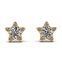 Glow in our sparkly star earrings. The adorable star studs light up with diamond in the center with five different diamond enhancing the five-point of the star thereby illuminating the look of the wearer. These post earrings secure comfortably with friction backs.