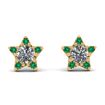 Glow in our sparkly star earrings. The adorable star studs light up with diamond in the center with five different diamond enhancing the five-point of the star thereby illuminating the look of the wearer. These post earrings secure comfortably with friction backs.