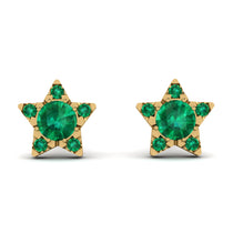 Glow in our sparkly star earrings. The adorable star studs light up with Emerald in the center with five different Emerald enhancing the five-point of the star thereby illuminating the look of the wearer. These post earrings secure comfortably with friction backs.