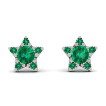 Glow in our sparkly star earrings. The adorable star studs light up with Emerald in the center with five different Emerald enhancing the five-point of the star thereby illuminating the look of the wearer. These post earrings secure comfortably with friction backs.