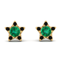 Glow in our sparkly star earrings. The adorable star studs light up with Emerald in the center with five different Emerald enhancing the five-point of the star thereby illuminating the look of the wearer. These post earrings secure comfortably with friction backs.