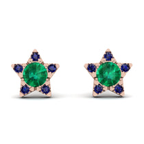 Glow in our sparkly star earrings. The adorable star studs light up with Emerald in the center with five different Emerald enhancing the five-point of the star thereby illuminating the look of the wearer. These post earrings secure comfortably with friction backs.