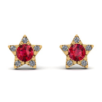 Glow in our sparkly star earrings. The adorable star studs light up with Ruby in the center with five different Ruby enhancing the five-point of the star thereby illuminating the look of the wearer. These post earrings secure comfortably with friction backs.