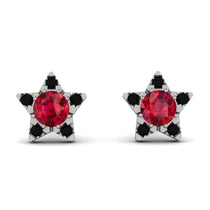 Glow in our sparkly star earrings. The adorable star studs light up with Ruby in the center with five different Ruby enhancing the five-point of the star thereby illuminating the look of the wearer. These post earrings secure comfortably with friction backs.