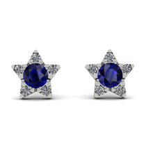 Glow in our sparkly star earrings. The adorable star studs light up with Sapphire in the center with five different Sapphire enhancing the five-point of the star thereby illuminating the look of the wearer. These post earrings secure comfortably with friction backs.