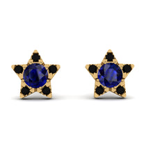 Glow in our sparkly star earrings. The adorable star studs light up with Sapphire in the center with five different Sapphire enhancing the five-point of the star thereby illuminating the look of the wearer. These post earrings secure comfortably with friction backs.
