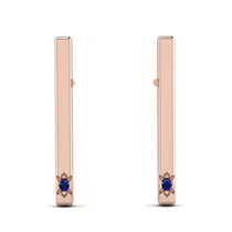 The minimalist movement has made quite an impact on modern fashion. Keeping with the trends, these linear earrings feature gleaming vertical bars of gold along with a unique Sapphire stud at the end that adds glam to the design. These versatile earrings are a perfect elegant addition to any ensemble, from business casual to formal wear.