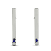 The minimalist movement has made quite an impact on modern fashion. Keeping with the trends, these linear earrings feature gleaming vertical bars of gold along with a unique Sapphire stud at the end that adds glam to the design. These versatile earrings are a perfect elegant addition to any ensemble, from business casual to formal wear.