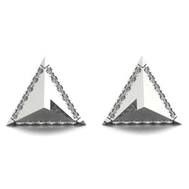 Take your look up a notch with these sleek diamond stud earrings. Fashioned in warm gold, each triangular stud shimmers with a 3-way border by pavé-set bright white diamond. White diamond line the edges of each design, ensuring sparkle and shine from every angle. Beautifully finished and ready to wear, these glistening earrings are secured comfortably with friction back