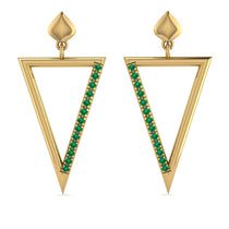 These beautiful Triangle Emerald Stud Earrings will make you feel gorgeous and self-confident with its elegance and style. These Triangle Emerald Stud Earrings are triangles in shape and each has a row of thirteen round Emeralds on one earring. With their classy look, these Triangle Emerald Stud Earrings will be a stunning addition to your ears.
