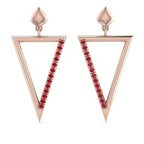 These beautiful Triangle Ruby Stud Earrings will make you feel gorgeous and self-confident with its elegance and style. These Triangle Ruby Stud Earrings are triangles in shape and each has a row of thirteen round Rubys on one earring. With their classy look, these Triangle Ruby Stud Earrings will be a stunning addition to your ears.