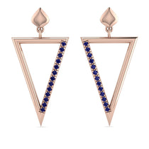These beautiful Triangle Sapphire Stud Earrings will make you feel gorgeous and self-confident with its elegance and style. These Triangle Sapphire Stud Earrings are triangles in shape and each has a row of thirteen round Sapphires on one earring. With their classy look, these Triangle Sapphire Stud Earrings will be a stunning addition to your ears.
