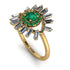 This lovely Round and Baguette Emerald Vintage Engagement Ring will represent a symbol of elegance and luxury which makes you feel beautiful and confident. Its center stone is round, surrounded by smaller, round stones . Finally, baguette shaped stones surround these, to complete the classy look. This Round and Baguette Emerald Vintage Engagement Ring will be a stunning addition to your finger.