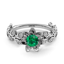 One of our favorite statement engagement rings, this exquisite design features 17 scintillating stones and story-telling enchantment. Sprouting jewel-set leaves climbing both sides of a slender band and a brilliant-cut stone, this treasured piece was modeled off Grecian laurel wreaths. Our decadent take on the historic prize makes it a dream-come-true ring that always catches someone's impressed eye.