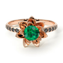 Rose Gold 0.5 Carat Round Cut Emerald Classic Lotus Flower Engagement Ring - Her name is simply... 'Lotus'. This Beautiful unique Gold Lotus flower engagement ring is one of my personal favorites and best creations. The Lotus flower is considered by many cultures to be a symbol of Rebirth, Purity and exquisite unparalleled beauty. There is no doubt this ring is the perfect match for those special and unique women out there.