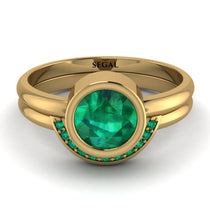 This Bezel Emerald Bridal Set is a comforting and classy ring, and you’ll definitely love it. It has a gorgeous round-shaped on the top, in its own circular band, and the band is circular as well. If you’re still undecided and want something comfortable, choose this Bezel Emerald Bridal Set.