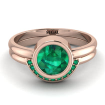 This Bezel Emerald Bridal Set is a comforting and classy ring, and you’ll definitely love it. It has a gorgeous round-shaped on the top, in its own circular band, and the band is circular as well. If you’re still undecided and want something comfortable, choose this Bezel Emerald Bridal Set.