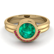 This Bezel Emerald Bridal Set is a comforting and classy ring, and you’ll definitely love it. It has a gorgeous round-shaped on the top, in its own circular band, and the band is circular as well. If you’re still undecided and want something comfortable, choose this Bezel Emerald Bridal Set.