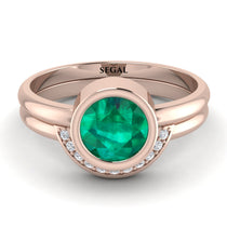 This Bezel Emerald Bridal Set is a comforting and classy ring, and you’ll definitely love it. It has a gorgeous round-shaped on the top, in its own circular band, and the band is circular as well. If you’re still undecided and want something comfortable, choose this Bezel Emerald Bridal Set.