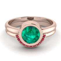 This Bezel Emerald Bridal Set is a comforting and classy ring, and you’ll definitely love it. It has a gorgeous round-shaped on the top, in its own circular band, and the band is circular as well. If you’re still undecided and want something comfortable, choose this Bezel Emerald Bridal Set.