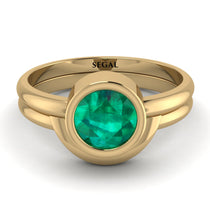 This Solitaire Bezel Emerald Bridal Set is a comforting and classy ring, and you’ll definitely love it. It has a gorgeous round-shaped on the top, in its own circular band, and the band is circular as well. If you’re still undecided and want something comfortable, choose this Solitaire Bezel Emerald Bridal Set.