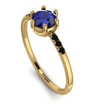 Glow with style and lavishness with this irresistible Basket Sapphire Ring. This Basket Diamond Ring has a superb design and refined appeal, thanks to its narrow band and round center Sapphire. Furthermore, it has second, smaller round stones on the sides. Get this Basket Sapphire Ring and you’ll have a piece of jewelry she will always wear.
